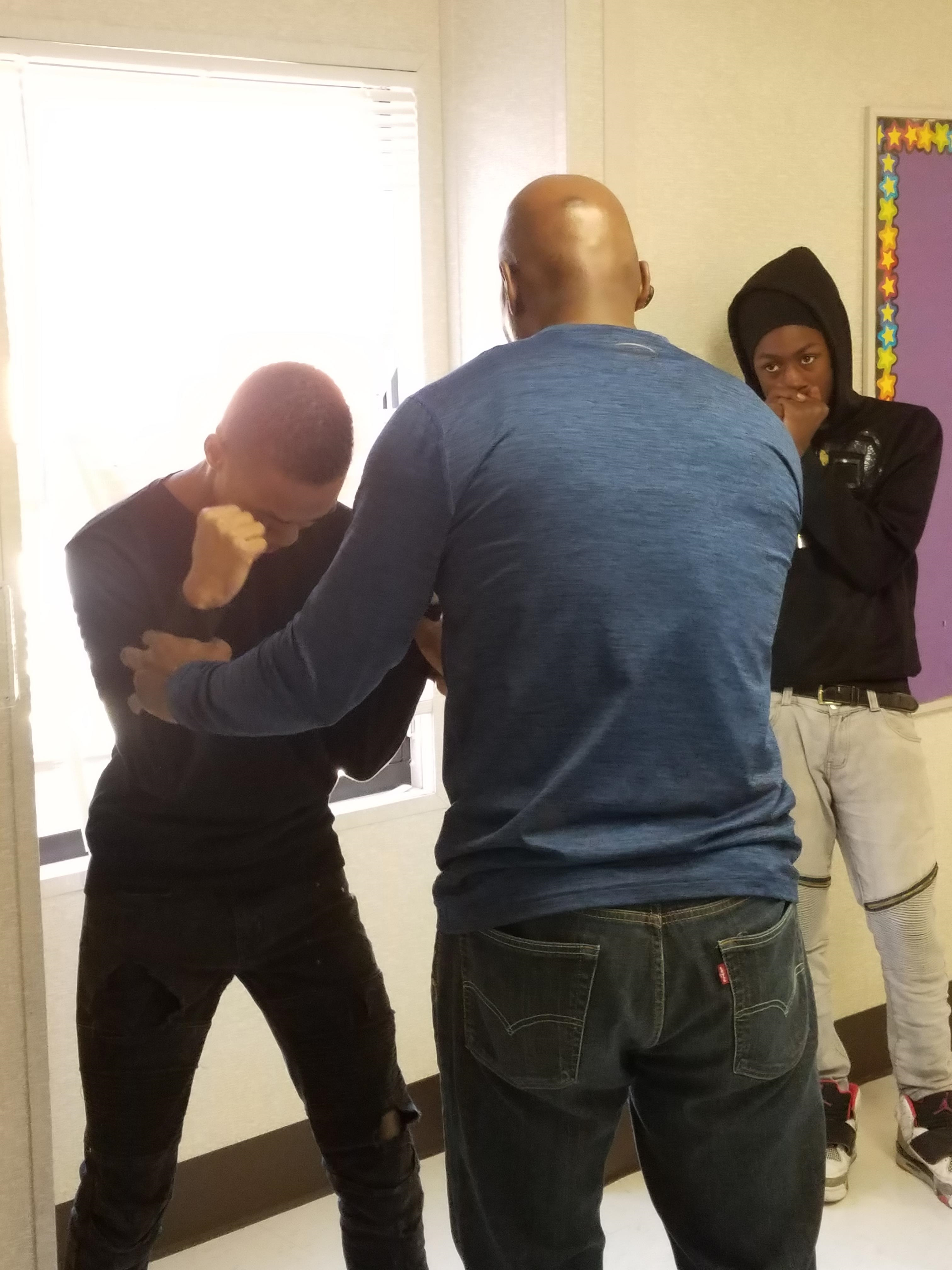Students are required to perform various exercises to build strength. Students are initially tested to obtain data on their physical ability performing these exercises. At preplanned intervals, students are retested to track student progress. In addition to fitness training, students are exposed to basic boxing training.